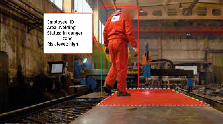 Video analytics system for Safety, Health and Environment (SHE). The system recognises potential risks in real time, through detection and recognition of dangerous interactions between humans, objects and the work environment.