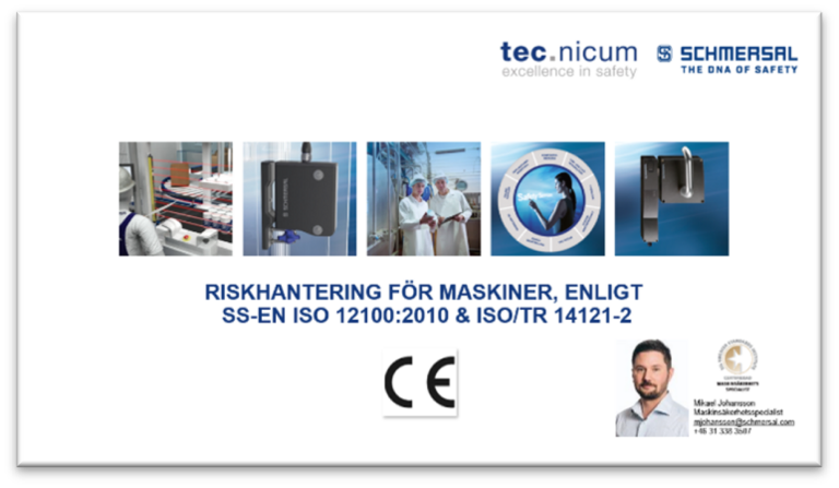 - Riskbedömning och Riskreducering enligt SS-EN ISO 12100